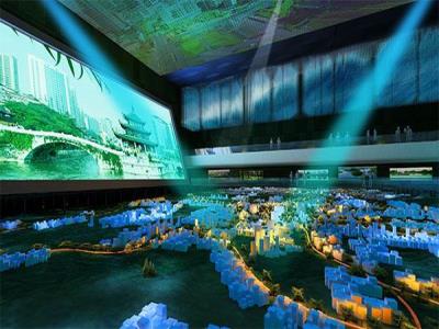 展厅中使用的模型沙盘的设计和计算机智能显示控制系统的使用是一个具有高科技水平、的创意方案。能使公众生动的、形象的、快速的、准确地认识和理解模型沙盘所展示的内容,并能对其展示给公众的目的有用。
