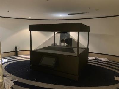沉浸式全息光影360橱柜错觉,橱柜时尚美观,科技感十足,顶部四面透明,真正的空间成像。其鲜艳的色彩、透视感、空中错觉都能形成。中间可以结合实物,实现图像与实物的结合,还可以加入触摸屏,实现与观众的互动。可以360左右观看虚拟3D的效果,非常酷。