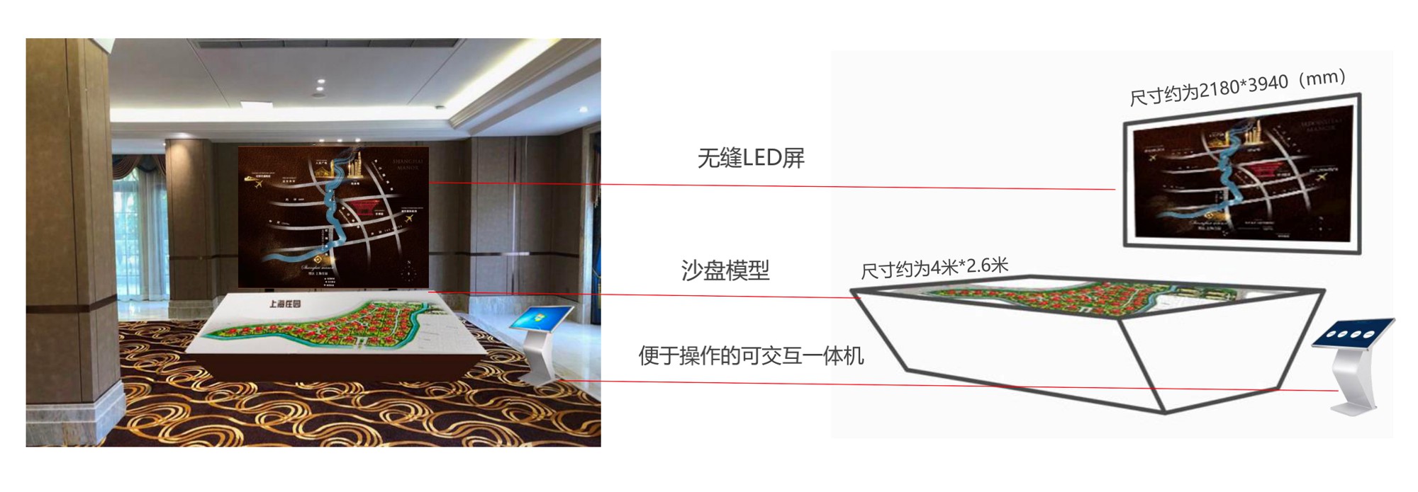 数字沙盘与传统沙盘模型可以进行无缝的结合,表现效果更为优美、逼真,具有更强的动态性、交互性和可延展性。